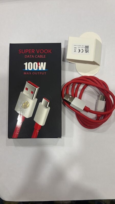 Super VOOK 100W Fast Charging USB to Type-C Cable | High Speed Data Sync | Durable Red Cable