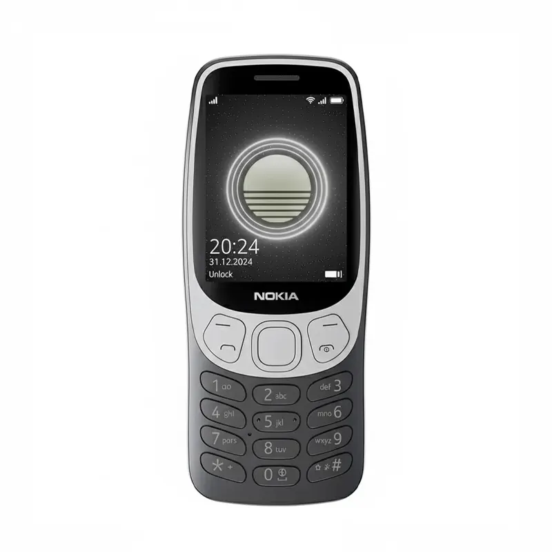 Nokia 3210 feature phone with 4G, 2.4″ display, Retro design, 2MP camera, Dual SIM, Cloud Apps, 1450mAh battery, USB Type-C charging, Micro SD slot up to 32GB, Bluetooth 5.0 – Y2K